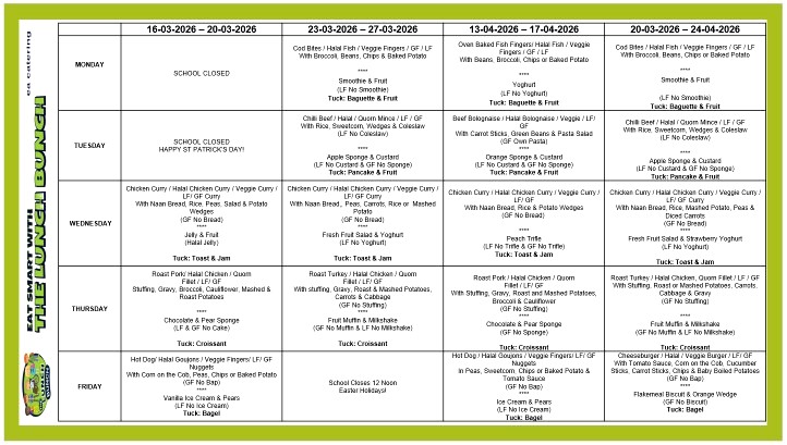Free School Meals / School Uniform / Physical Education Clothing applications for 2025/26 school year can now be made online by clicking the link: https://freeschoolmealsanduniforms.eani.org.uk/#no-back